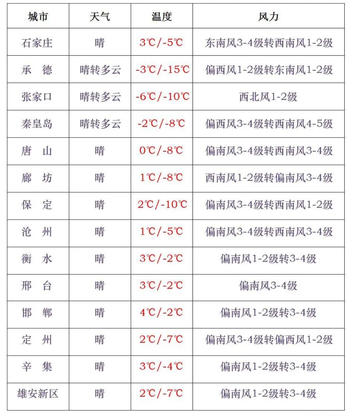 今天白天全省晴间多云,早晨大部分地区最低气温继续下降2-6℃。今天夜间到12日白天,张家口、承德和保定、石家庄、邢台、邯郸四个地区的西部有西北风4到6级,阵风7到8级,局地可达9级以上。