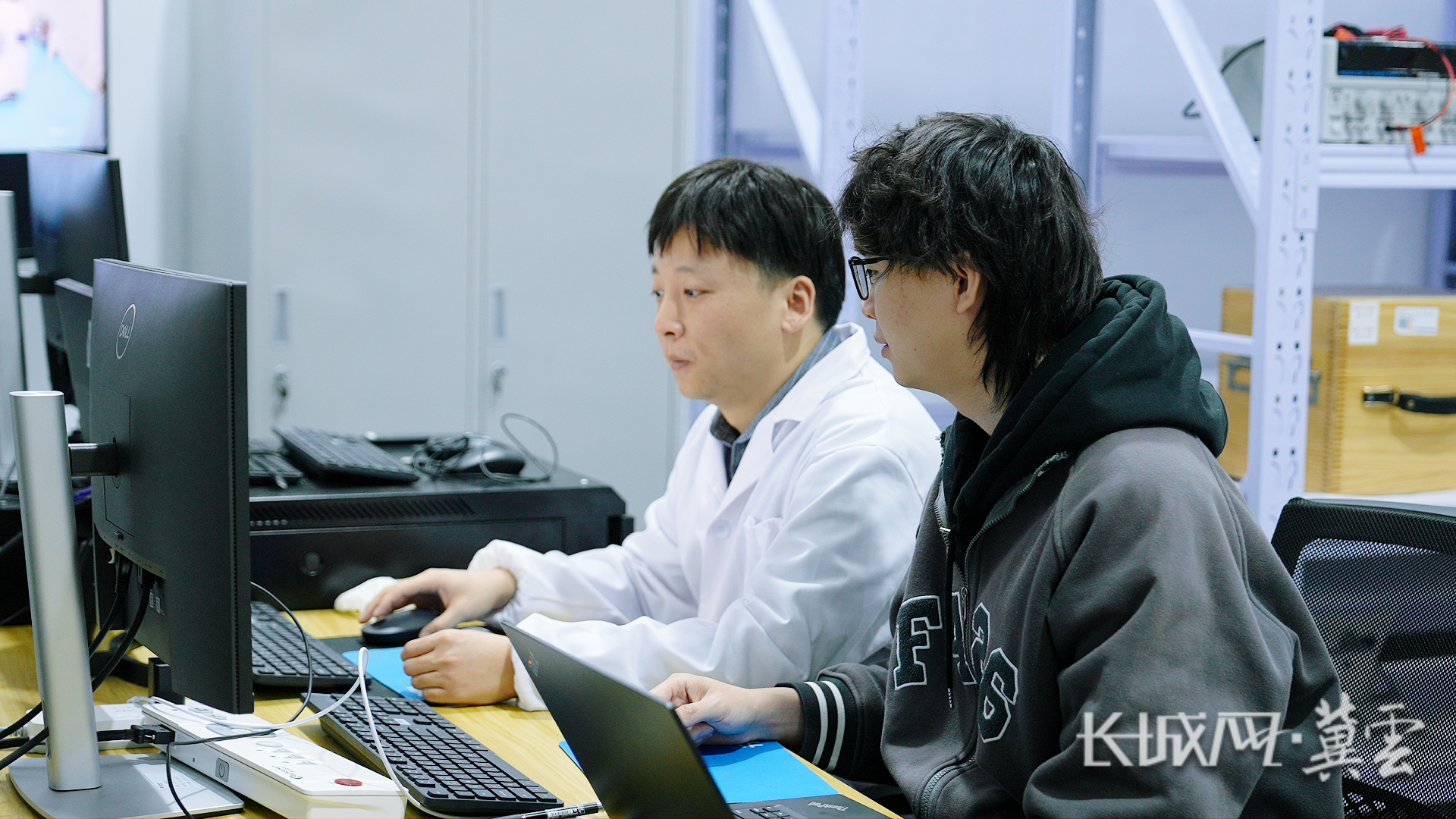 1月6日,鲍凯扬(左)与同事在位于石家庄市国际生物医药园的实验室内探讨业务。长城网·冀云客户端记者 康义涵 摄