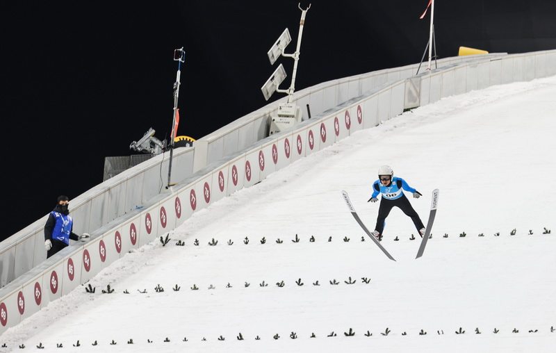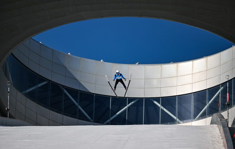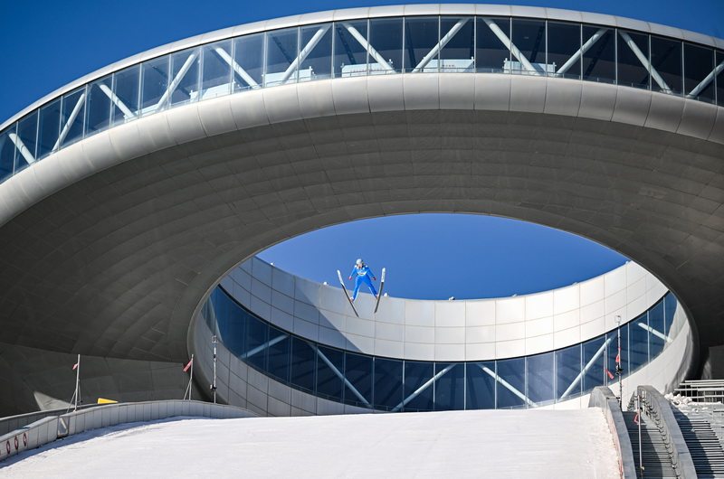 1月14日,2025-2026赛季国际雪联跳台滑雪洲际杯比赛现场。