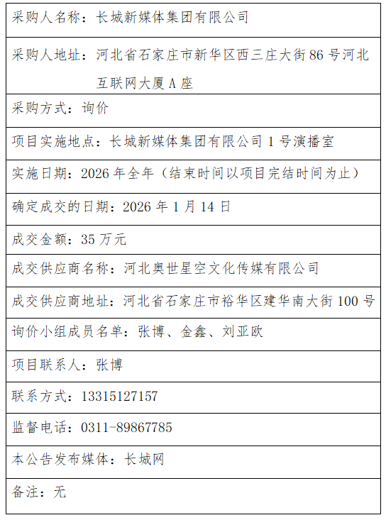 河北经济日报社安保服务项目成交结果公告