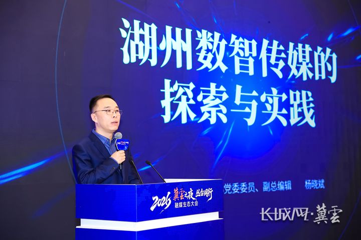 浙江省湖州市新闻传媒中心党委委员、副总编辑杨晓斌在作分享。