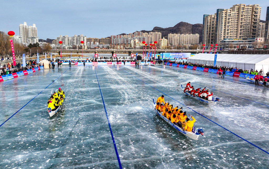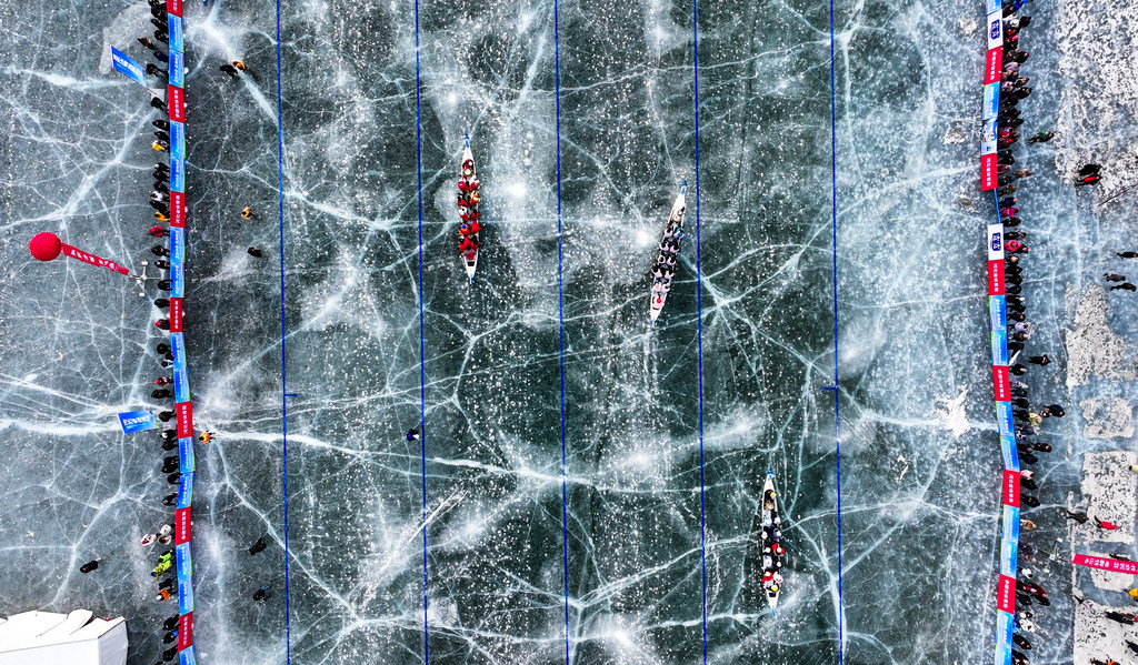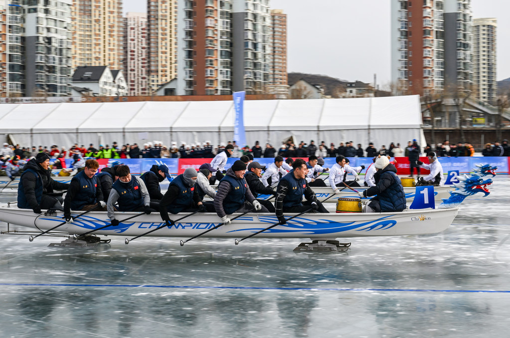 1月17日,2025-2026冰上龙舟超级联赛(承德站)在承德武烈河冰场开赛。