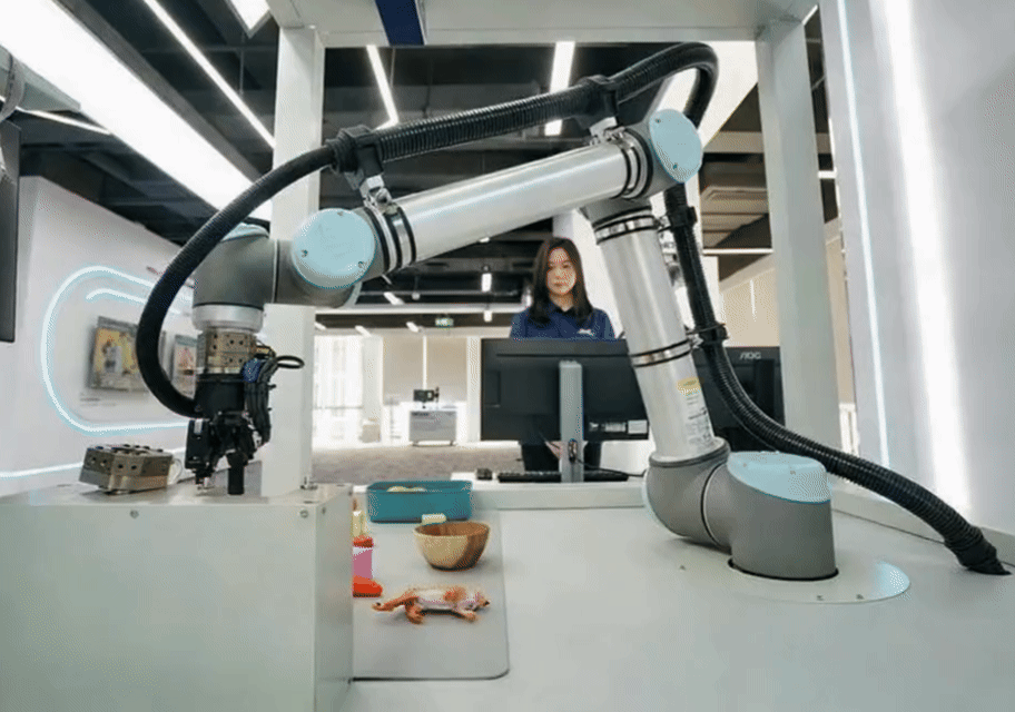 2025年3月26日,在雄安新区中关村科技园,梅卡曼德(北京)机器人科技有限公司工作人员在演示工业机器人运行。新华社记者 牟宇 摄