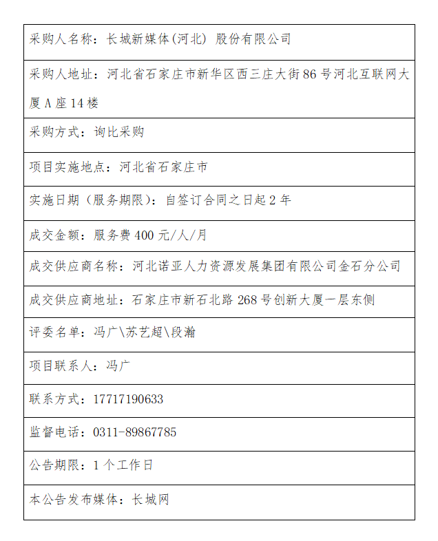 河北经济日报社安保服务项目成交结果公告