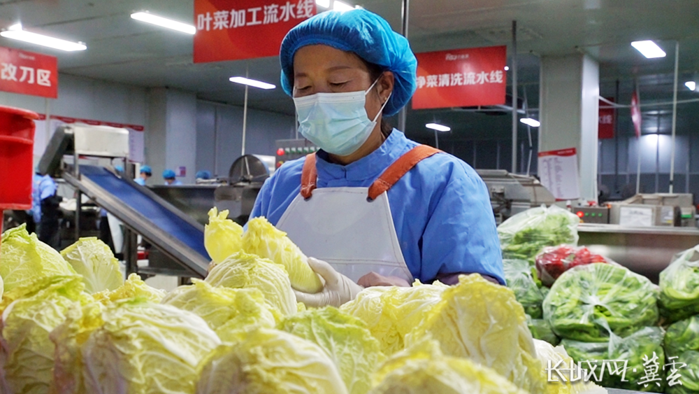 分拣、清洗、切配、包装……车间内机器轻鸣,工人们熟练操作,将新鲜蔬菜处理成标准化净菜。几小时后,这些贴着溯源二维码的“河北净菜”,将搭乘冷链车驶向北京,走上餐桌。