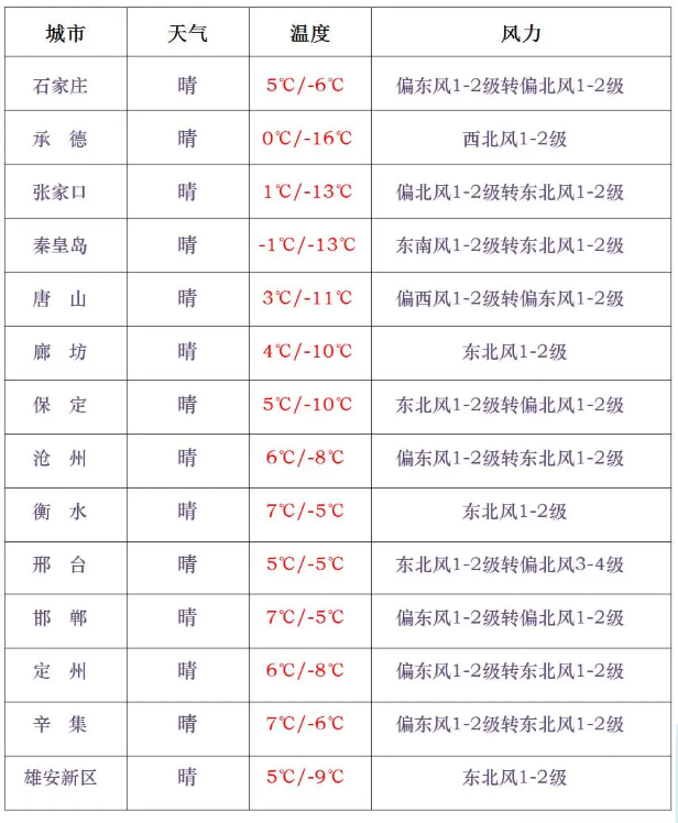 今天白天,全省晴间多云。今天夜间到25日,张家口、承德、保定北部和西部、雄安新区、廊坊和石家庄、邢台、邯郸三个地区的西部山区多云转阴有小雪或零星小雪,其他地区晴转多云。