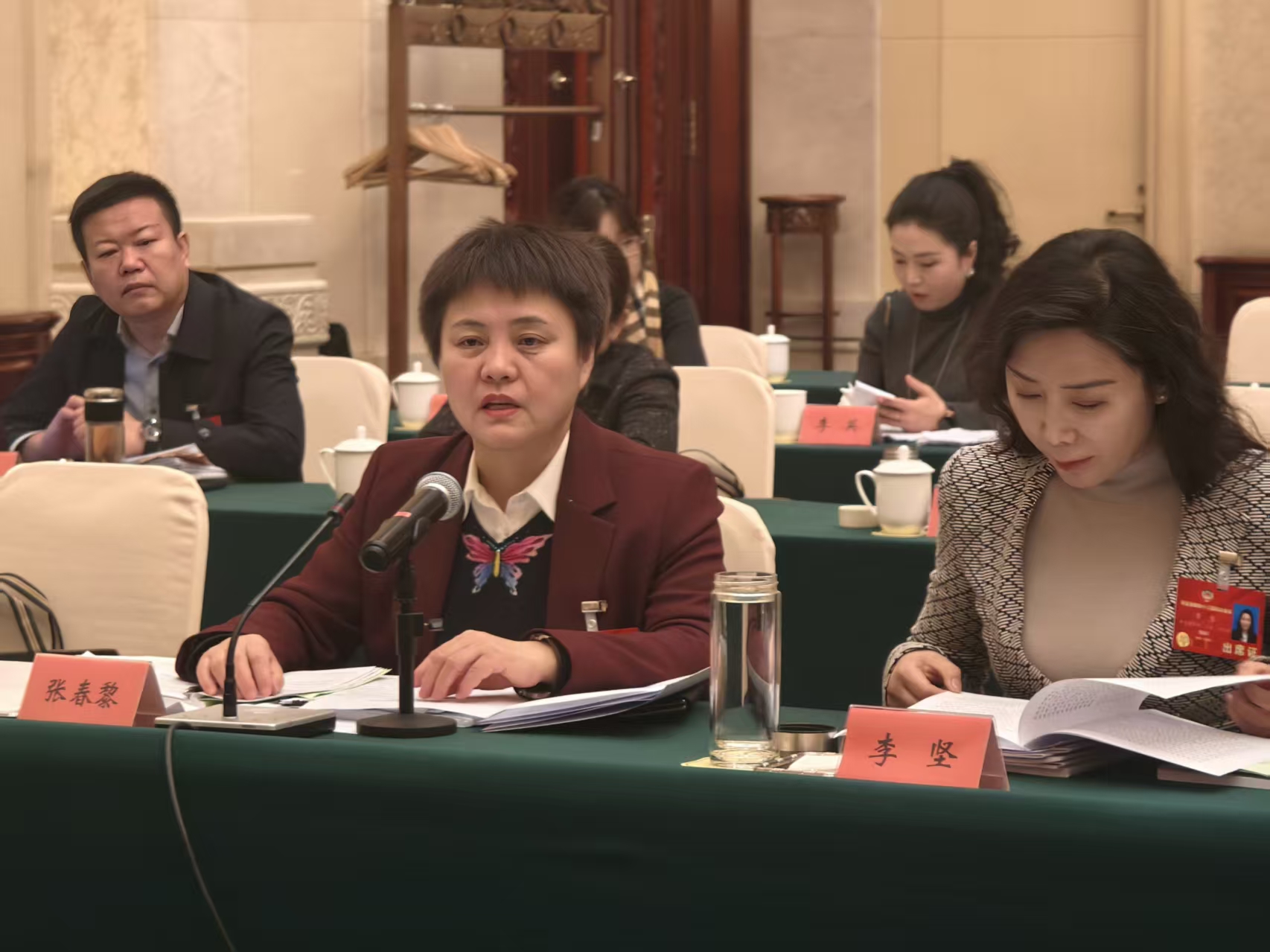 共青团、青联、工会、妇联界别小组讨论现场。图为省政协委员张春黎在会上发言。长城网·冀云客户端记者 郭甜肖 摄