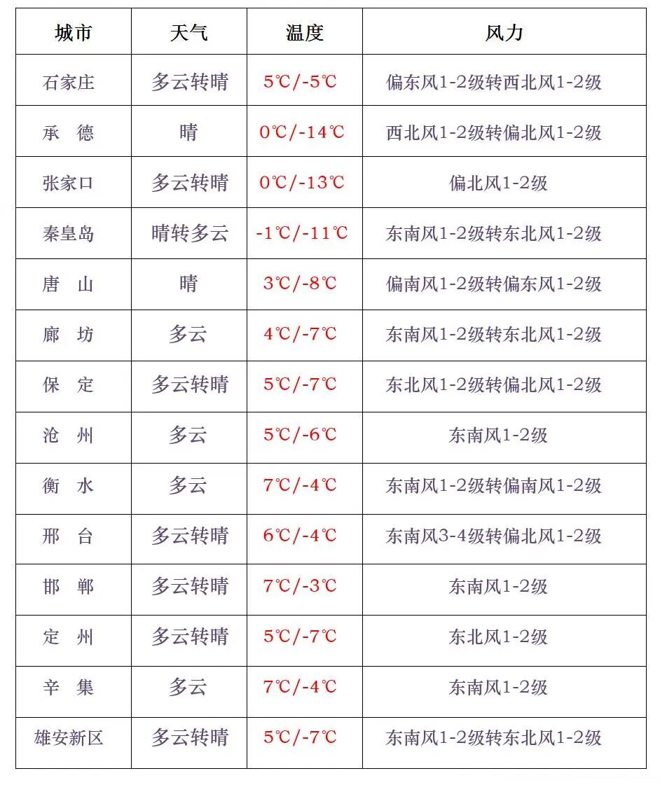 今天白天,张家口和保定、廊坊以南地区多云间晴,其他地区晴间多云。