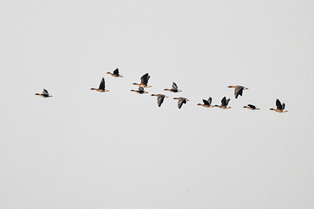 1月23日,大雁在磁县溢泉湖湿地飞翔。
