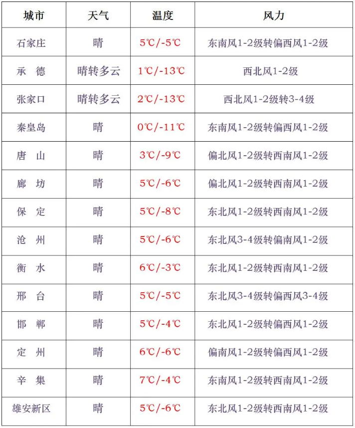 今天白天,张家口北部、承德北部多云,其他地区晴间多云。今天夜间到2月1日,保定、廊坊以北地区多云间晴,其他地区晴间多云。