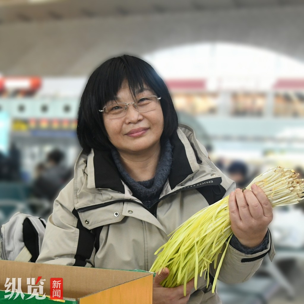 记者看到徐爱辉时,她正在检查着自己的行李。徐爱辉的行李其实很简单,除了一个双肩背包,就是一个封得严严实实的大纸箱。她笑着说,箱子里面有她带给北京邻居的“贵重礼物”。看到记者有些好奇,她解开了捆绑成“提手”的绳子,再一点点撕开箱子上封口的胶带。打开箱子后,她掀起盖在上面的报纸,里面的“贵重礼物”露出“庐山真面目”——一捆捆鲜嫩的韭黄。