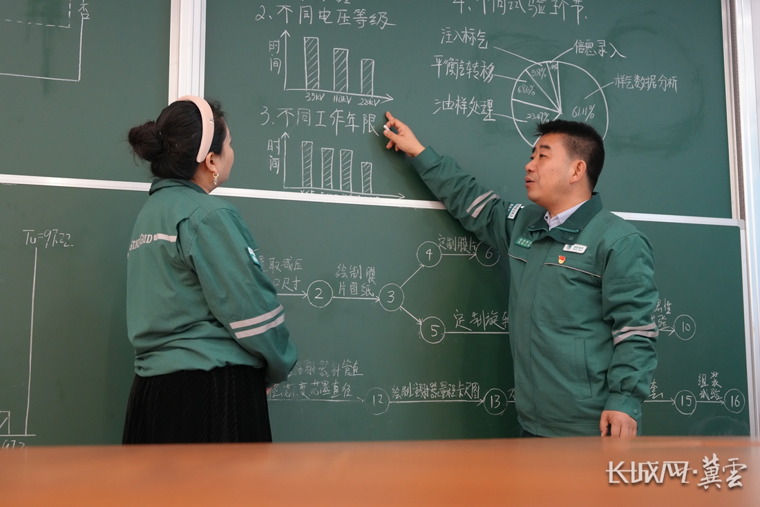 这份对工作的严谨与执着,始于2005年。那年,杨旭从部队转业到国网廊坊供电公司,从零开始学习继电保护、变电检修知识。为了尽快掌握专业技能,杨旭付出了超常努力。白天,他拿着工具跑现场,脏活累活抢着干,休息时间也捧着专业书籍学习;晚上回到家,他挑灯夜读,研读规程、图纸等技术资料。无论工作到多晚,他都会梳理总结当天所学并计划次日工作,凭着这种精神,杨旭迅速适应了检修班组里的工作节奏。