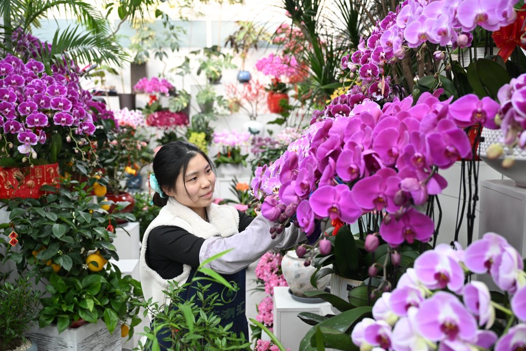 2月4日,在北京花卉交易中心,各类花卉争奇斗艳。河北日报记者 田明摄