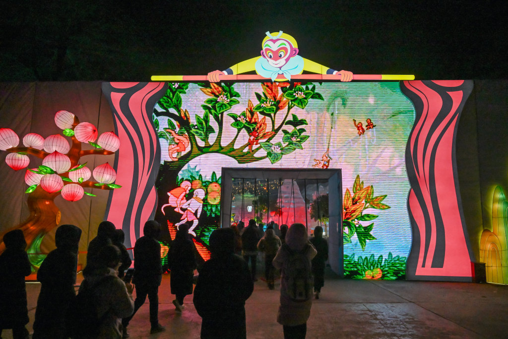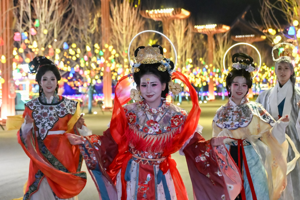 2月4日,演员在北京世园国际旅游度假区第四届花灯艺术节“天宫灯会”表演。