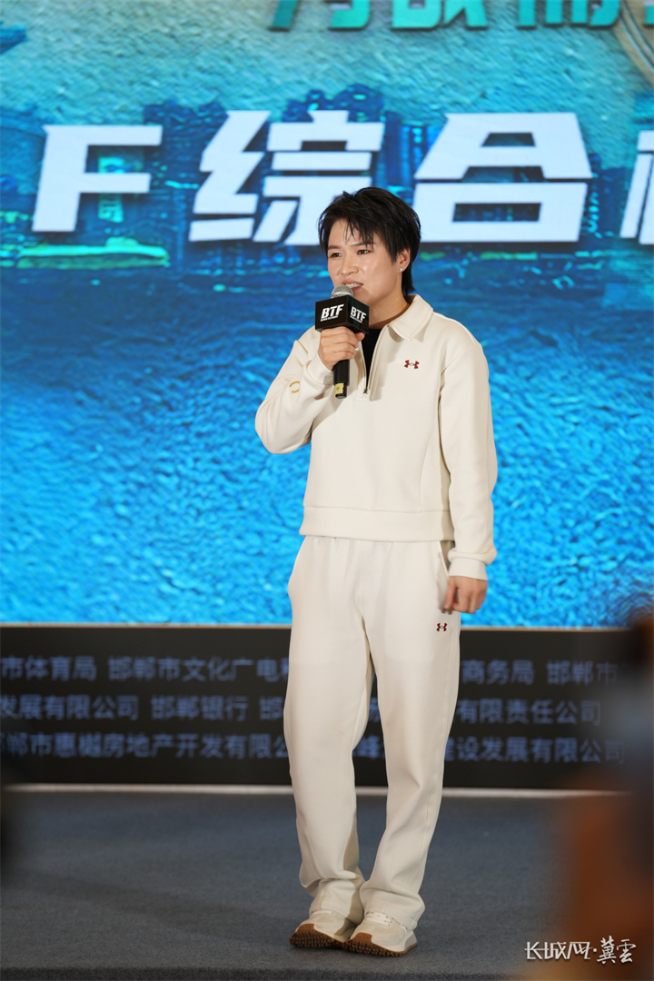 随后的揭幕仪式上,张伟丽登台致辞。她动情地表示:“MMA不仅仅是对抗,更是关于 discipline(自律)、respect(尊重)和不断超越自我。很高兴能回到家乡邯郸,启动BTF赛事。邯郸有深厚的历史底蕴,我希望通过这个平台,把搏击运动的精神和我们邯郸的文化魅力一起传递给更多人。”致辞后,张伟丽、李景亮共同按下启动装置,标志着BTF赛事全球征程正式从邯郸起步。