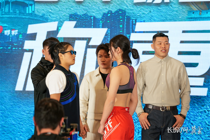 作为赛事发起人之一,邯郸籍UFC世界冠军张伟丽当天全程参与活动,与另一位发起人李景亮共同引领赛事起航。下午3时,赛前称重仪式在丛台迎宾馆金色大厅举行,32名参赛运动员依次登场,完成赛前关键环节,现场气氛紧张而热烈。