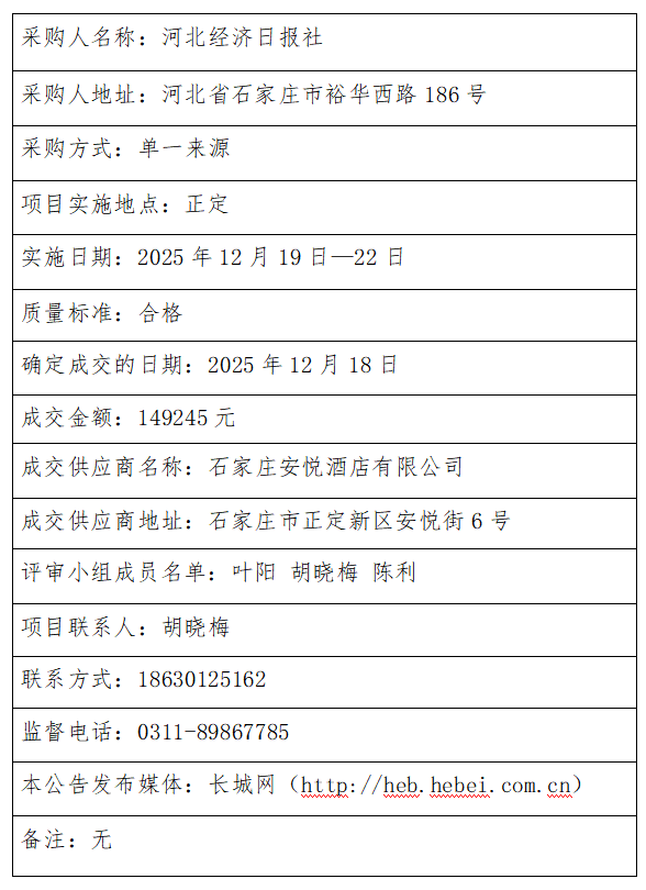 冀生活金融服务项目成交结果公告