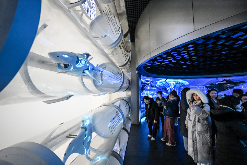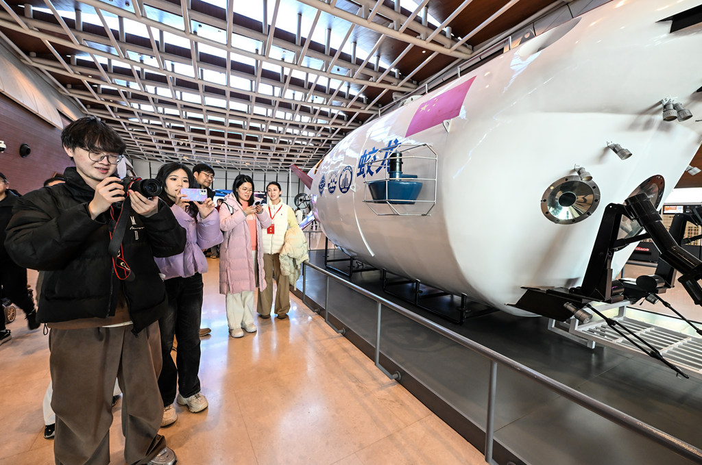 2月7日,游客在位于天津滨海新区的国家海洋博物馆参观。
