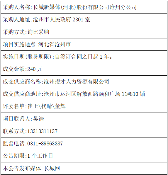 冀生活金融服务项目成交结果公告