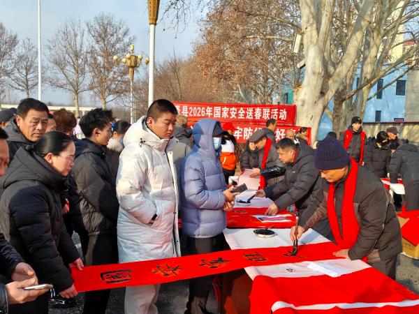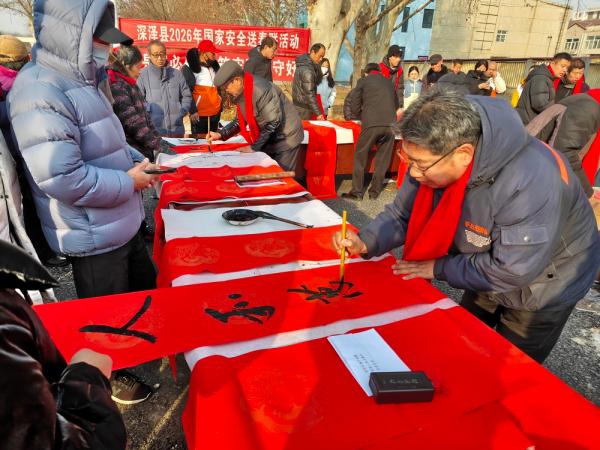 石家庄市深泽县抢抓新春佳节来临契机,将国家安全宣传和传统文化习俗巧妙结合,2月9日,在丽泽广场举办了“深泽县2026年国家安全送春联”活动,为居民送上平安祝福与国安知识的新春“文化礼包”。深泽县委办公室联合县委宣传部、县文联,邀请20多位县内书法爱好者为群众现场手写春联。