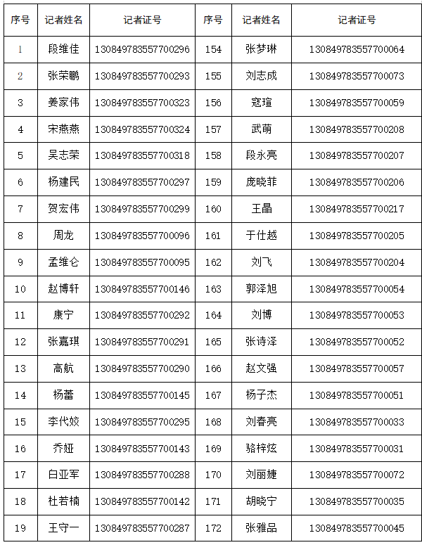 长城网网站新闻记者证核验通过人员名单