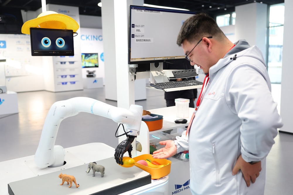 在雄安新区启动区的雄安人工智能产业园展厅内,一系列人工智能的产品同样引人关注。在展示区,记者点击屏幕发出“拿取一罐无糖可乐”的指令,面前的具身智能机器人就开始在货架上取货。很快,机器人使用机械手就把可乐拿到面前。随后机器人又演示了拿取袋装零食,动作同样精准。来自北京的梅卡曼德公司研发的这款具身智能机器人科技感十足。