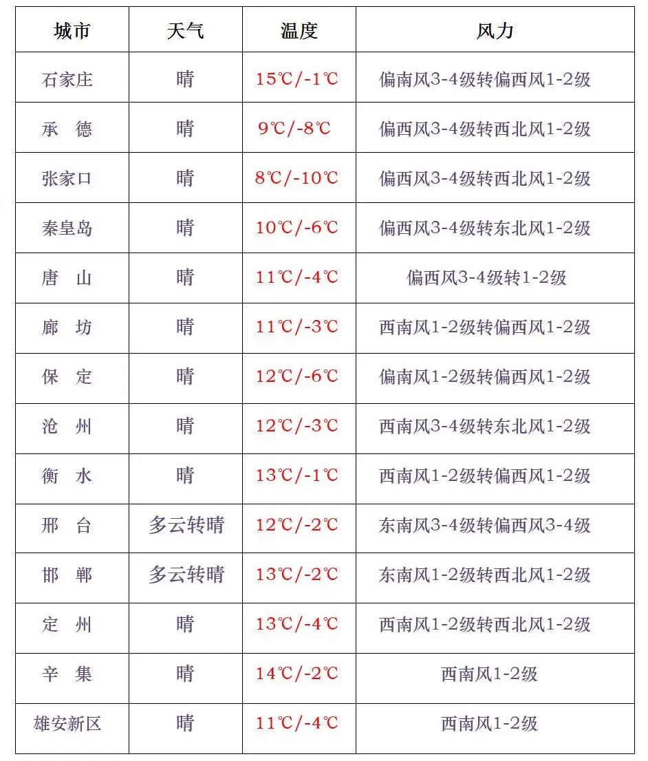 今天白天,张家口北部、承德北部晴转多云,其他地区晴间多云。张家口、承德北部、保定西北部有西北风4到5级,阵风6到7级,局地可达8级。