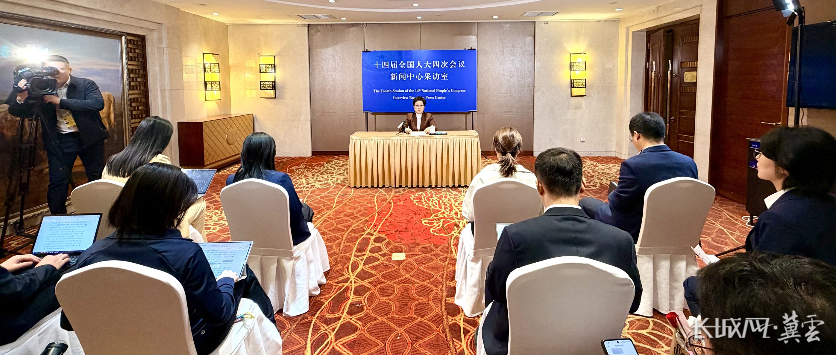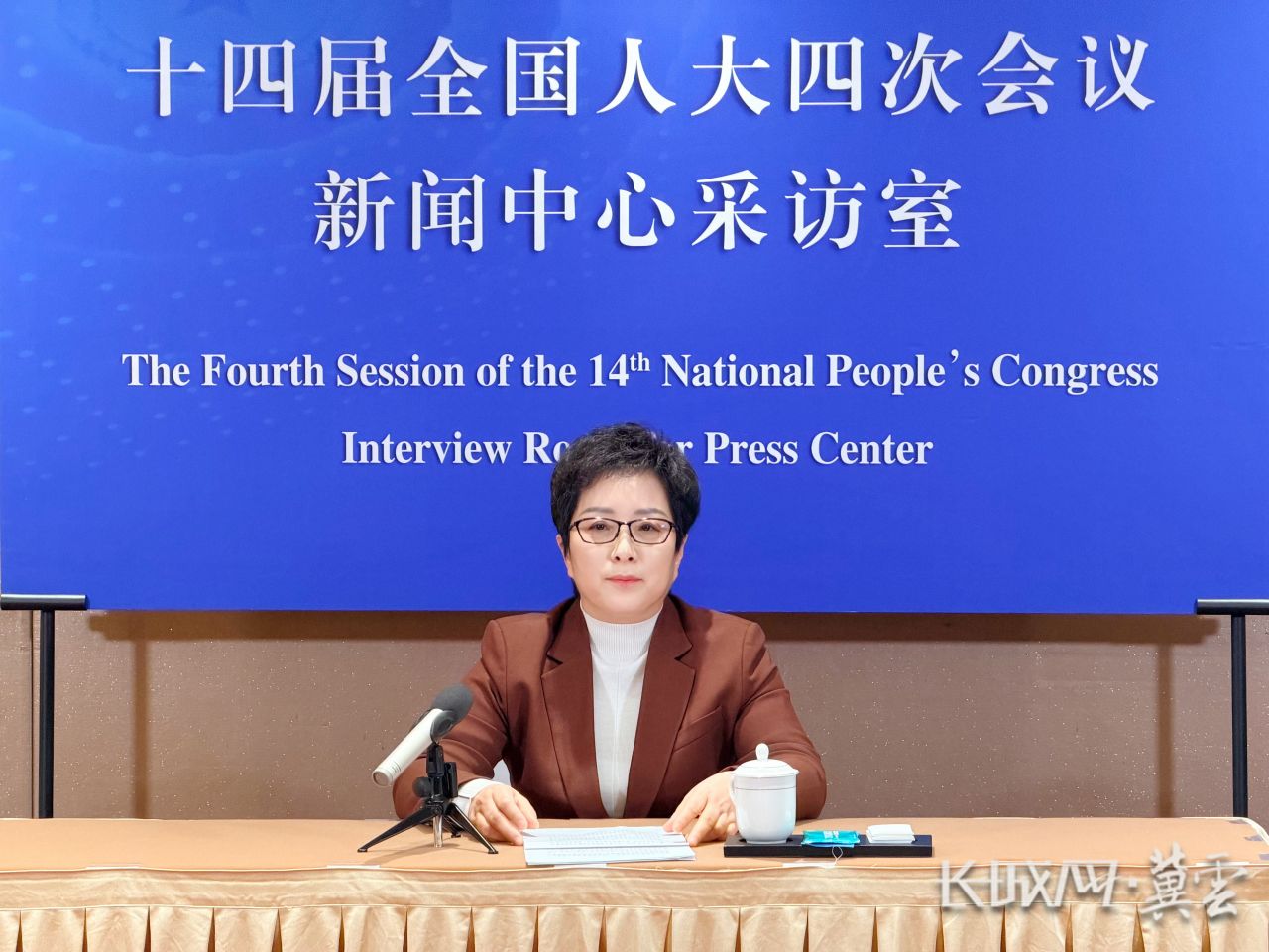 3月8日晚,出席十四届全国人大四次会议的河北省代表团举行新闻发布会,新闻发言人郭红介绍代表团开展审议审查、提交议案建议有关情况。记者 耿佳 摄