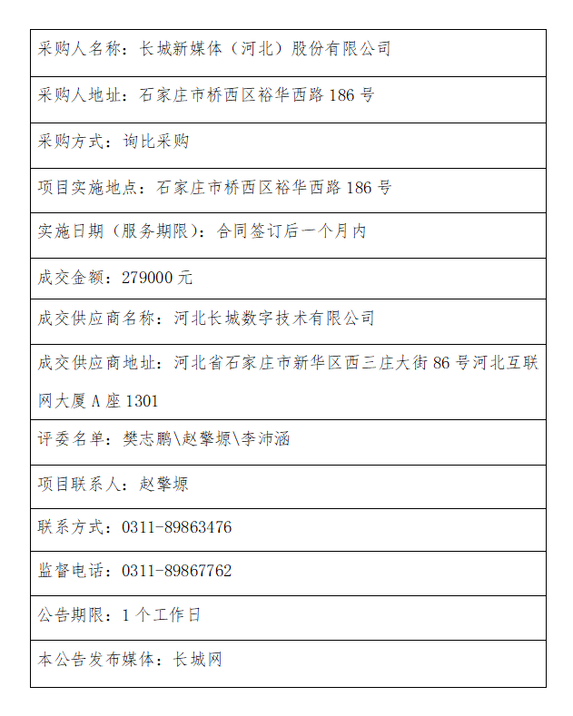 长城融媒科技事业部2026-2027年度劳务派遣服务项目成交结果公告