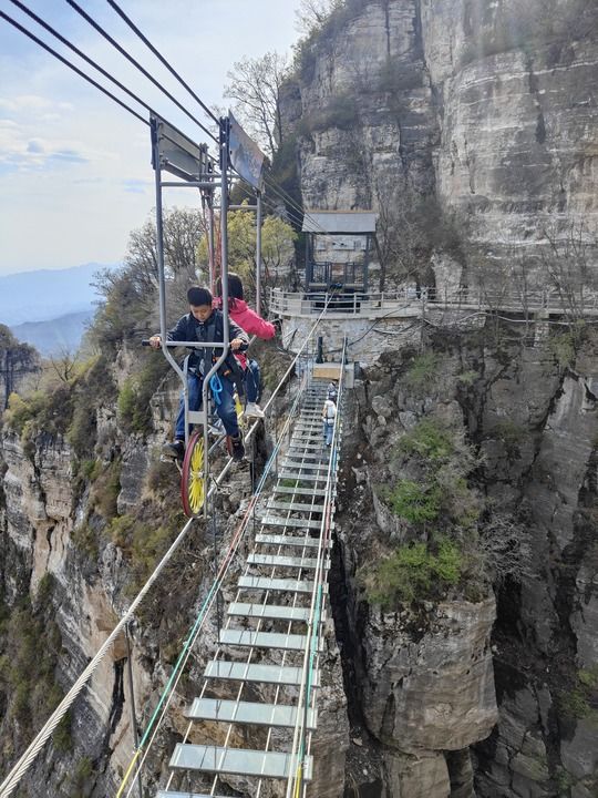 游客在白石山景区体验空中自行车 王昆 摄