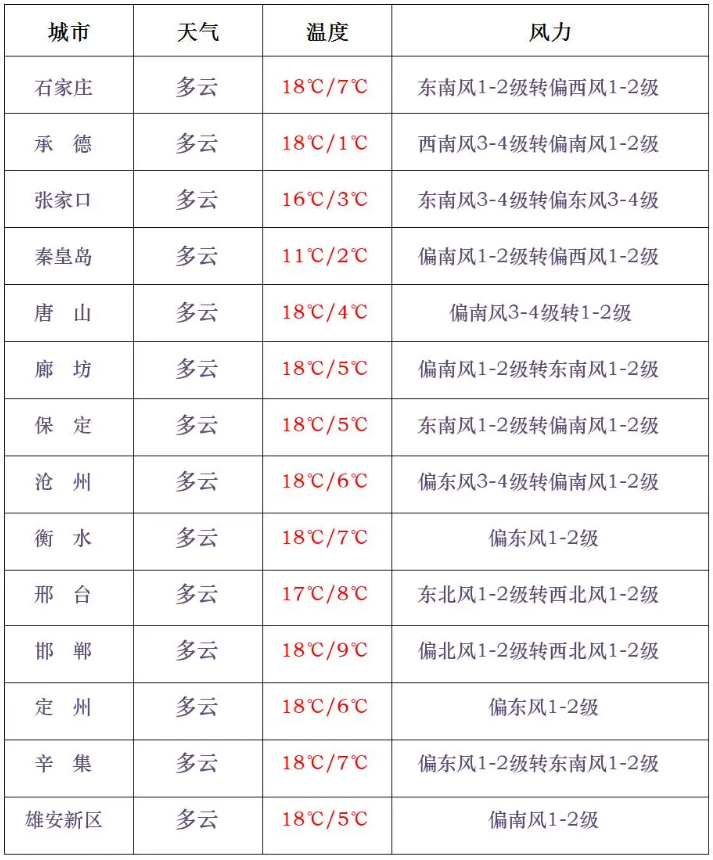 今天白天,全省多云间晴。今天夜间到24日,保定、廊坊及以北地区和石家庄西部多云,其他地区多云间晴。