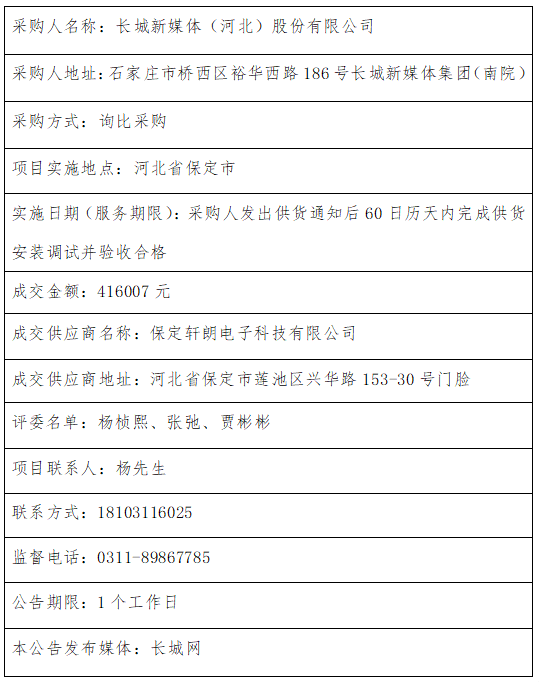 融媒体中心应急广播配套辅材采购项目成交结果公告