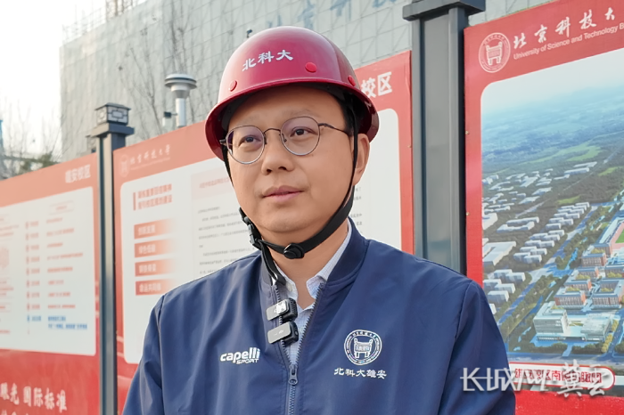 他指着身后正在建设的北京科技大学雄安校区的楼宇说:“2年前我来的时候,还是一片平地,你看现在,我们一期工程已累计开工约90万平方米,其中第一组团项目6栋建筑已实现主体结构全面封顶,第二组团项目正在进行主体施工。预计2027年一期工程竣工后,具备‘开门办学’的整体条件。待一期二期工程全部建成后,北京科技大学雄安校区将容纳约3.6万名学生。”