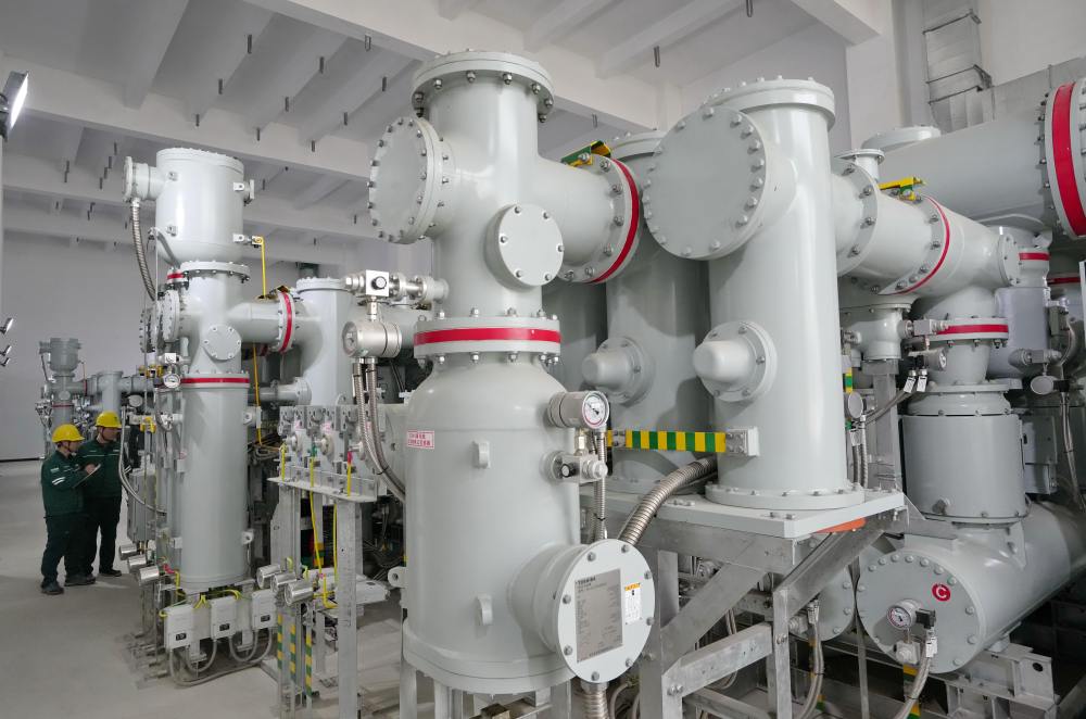 ↑ 3月24日,国网雄安新区供电公司员工在昝西220千伏变电站内巡检。