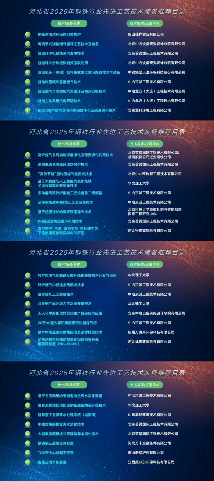 会上还发布了河北省2025年钢铁行业先进工艺技术装备推荐目录,34项技术获推荐,其中高端化技术15项、智能化技术4项、绿色化技术15项。后续,河北将组织开展先进技术专项对接活动,推动目录内技术装备在钢铁企业的落地应用,并引导金融机构给予转型融资支持,助力钢铁行业绿色低碳发展。