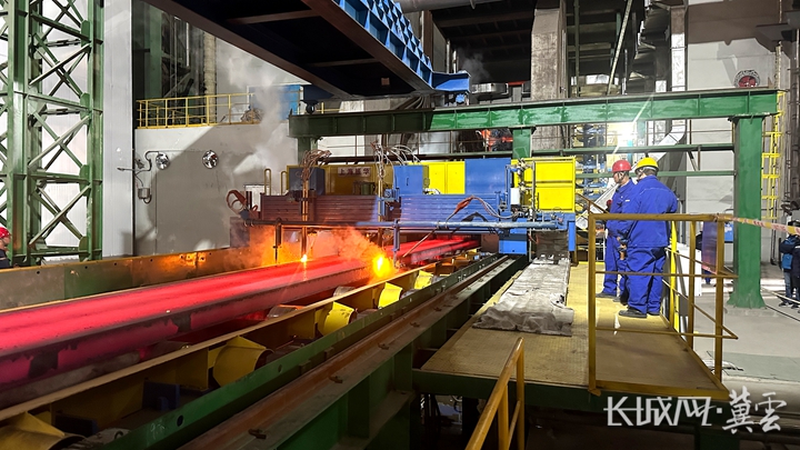 在河钢集团张宣科技的厂房屋顶上,一片片光伏板如蓝色波浪般铺展。不远处,一条横跨空中的银色管道内,富氢气体被源源不断地输送到120米高的氢冶金竖炉中。走进近零碳产线,随着全流程管控升级,近零碳排电炉再次刷新节能纪录,金属成型环节工序周期缩短6.51%。