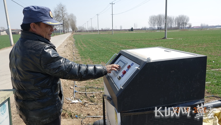 村民陈栓才在一口机井旁停下脚步,掏出电卡轻轻一刷,随后在智能水肥一体机的显示屏上按了几下。