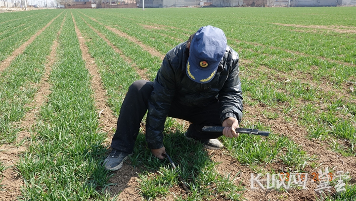 于丛娜拿起一把小铲子,随手在地里挖出一棵麦苗:“你看,宽幅匀播配上浅埋滴灌,麦种不挤在一块儿,每棵都有充足的生长空间,小麦根系发达,分蘖也多。我们测算过,这样种的小麦,一亩地能增产150到200斤。”