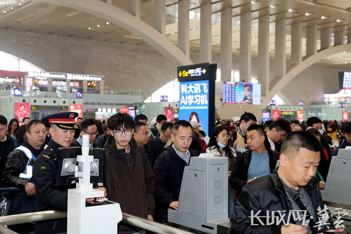 旅客在石家庄站候车区排队进站。通讯员供图
