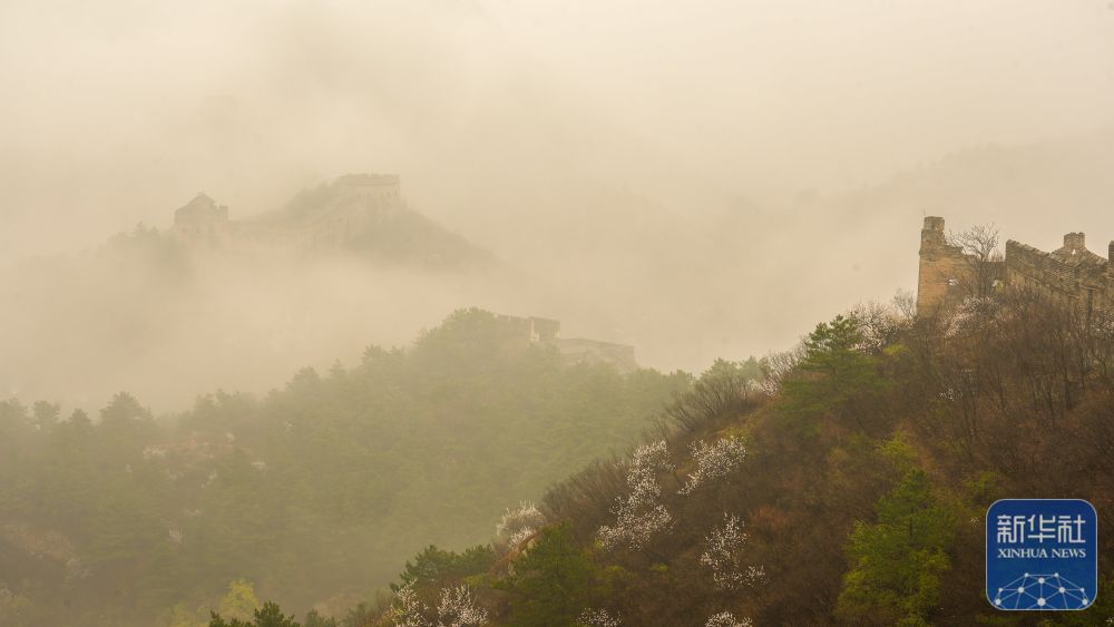 ↑ 这是4月9日在河北省承德市滦平县拍摄的雨后金山岭长城。新华社发(周万平摄)