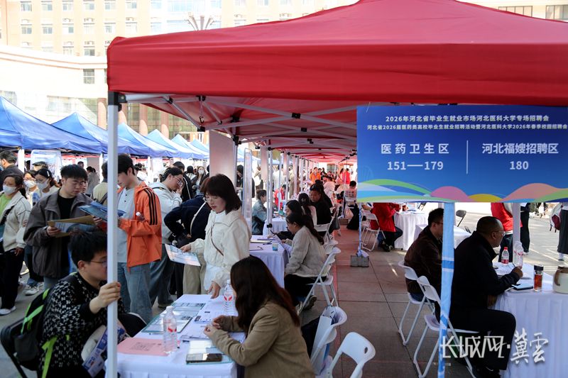 4月11日,“2026年河北省毕业生就业市场河北医科大学专场招聘会、河北省2026届医药类高校毕业生就业招聘活动暨河北医科大学2026年春季校园招聘会”在石家庄举办。活动现场共邀请274家用人单位参会,需求人才10273人。