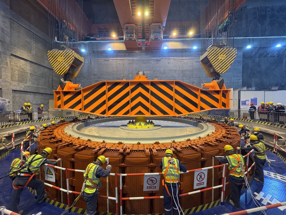 4月11日,华电金上拉哇水电站首台(4号)机组转子顺利完成吊装,标志着机组进入总装冲刺阶段,为确保按期投产发电奠定坚实基础。