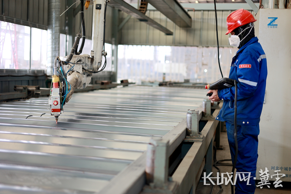 技术人员控制切割机器人切割钢板。长城网·冀云客户端记者 袁立朋 摄