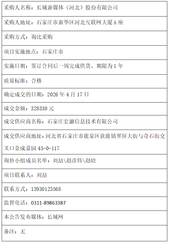 2026年直播设备租赁及服务项目采购成交结果公告