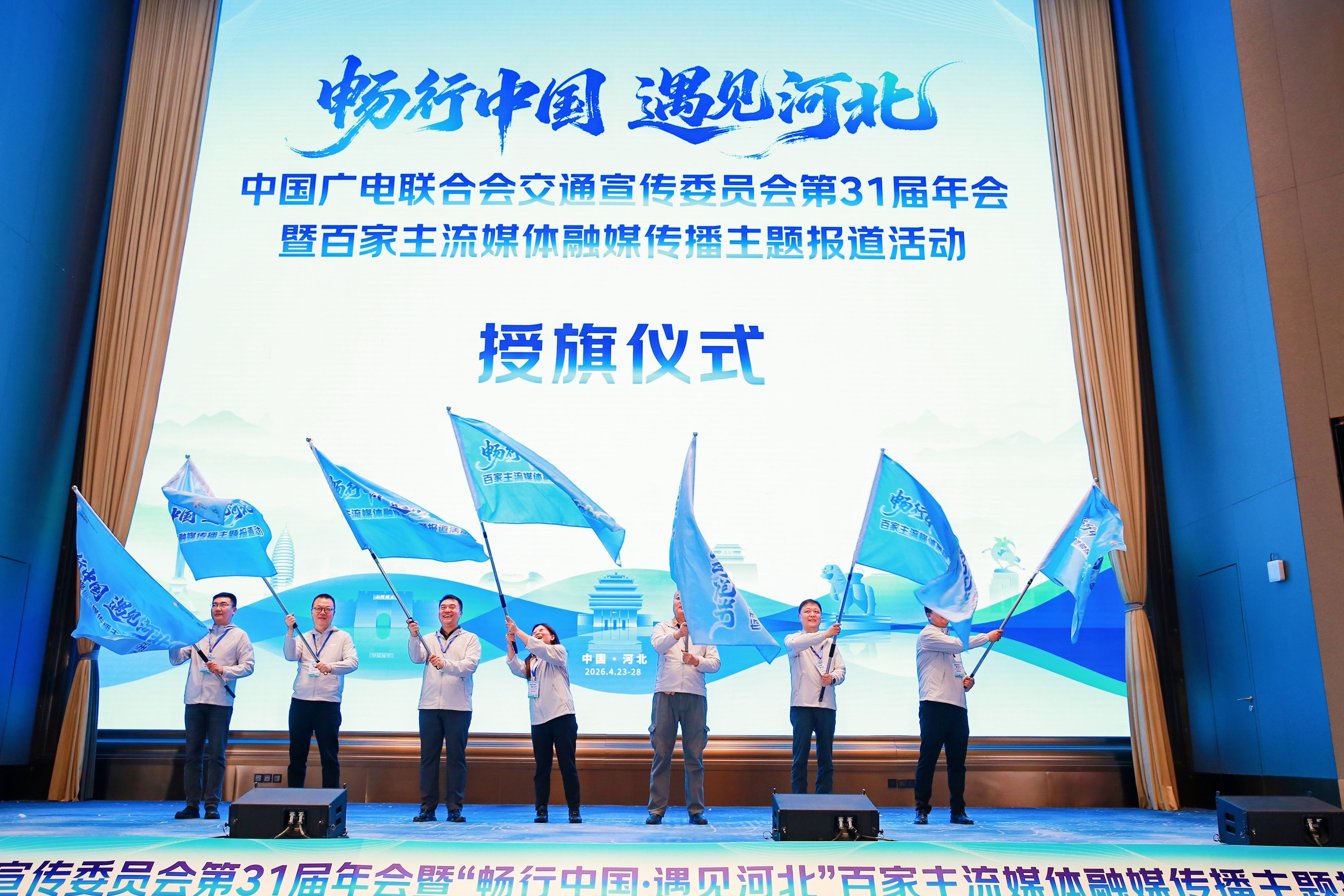 2026年4月24日上午,由中国广播电视社会组织联合会指导,中国广电联合会交通宣传委员会、河北广播电视台联合主办的中国广电联合会交通宣传委员会第31届年会暨“畅行中国·遇见河北”百家主流媒体融媒传播主题报道活动开幕式在河北石家庄隆重举行。来自全国百城百台的交通广播同仁齐聚一堂,共赴一场融媒时代的春日之约。