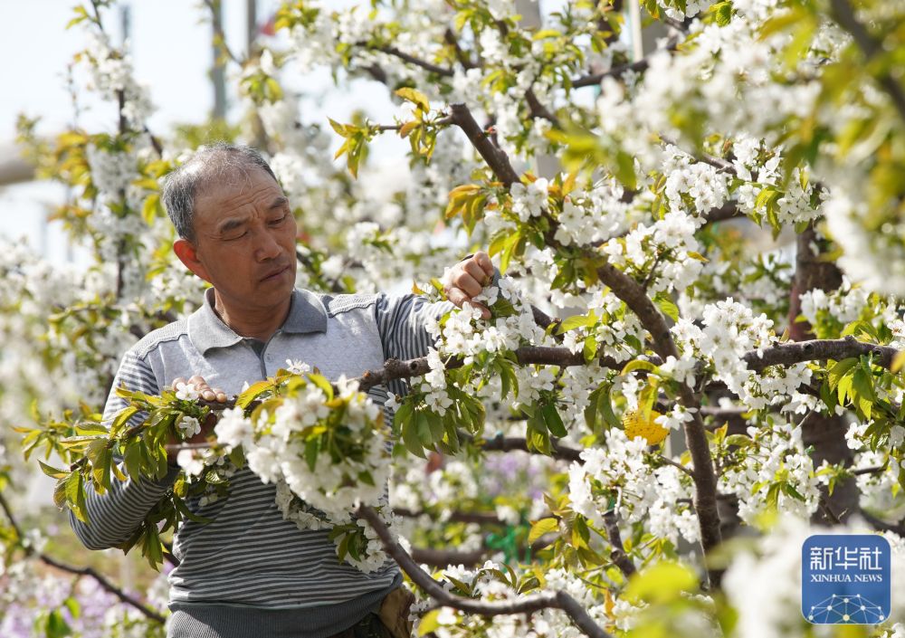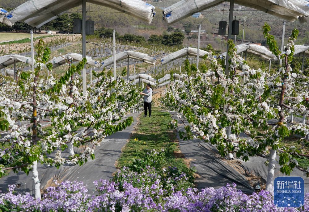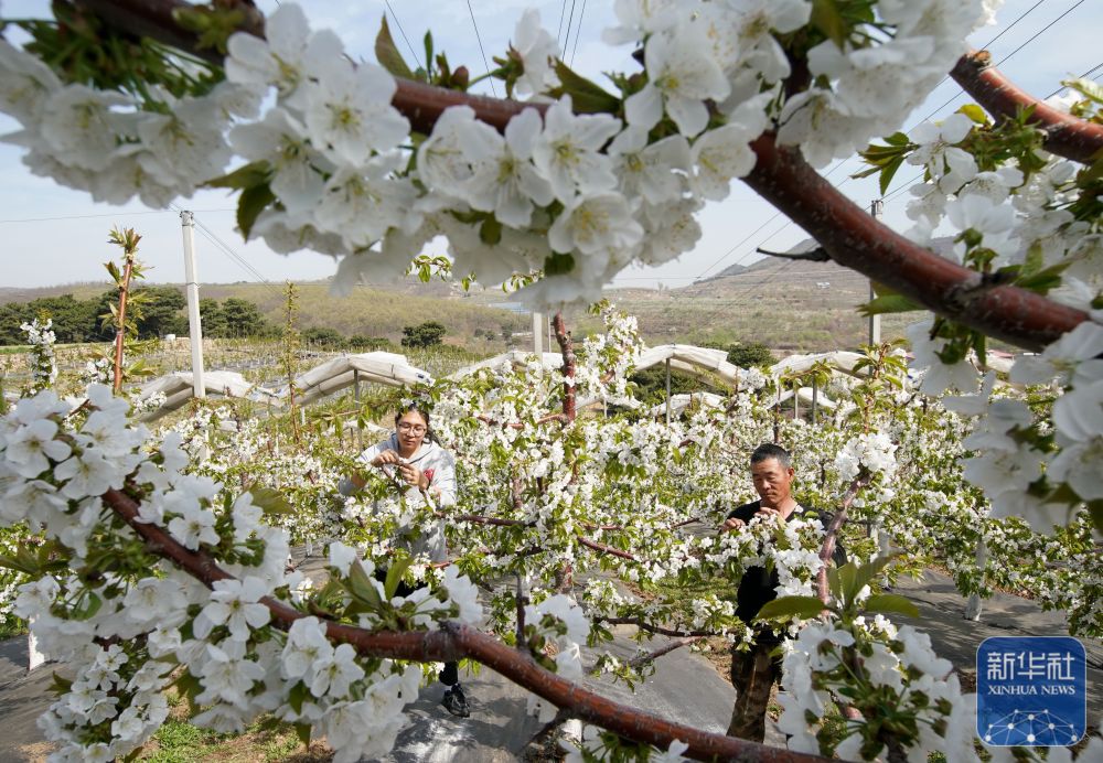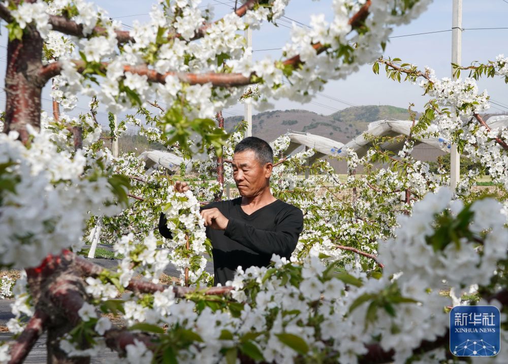 近日,河北省秦皇岛市山海关区的3万多亩樱桃树陆续开花,果农抢抓农时进行疏花授粉。新华社记者 杨世尧 摄影报道