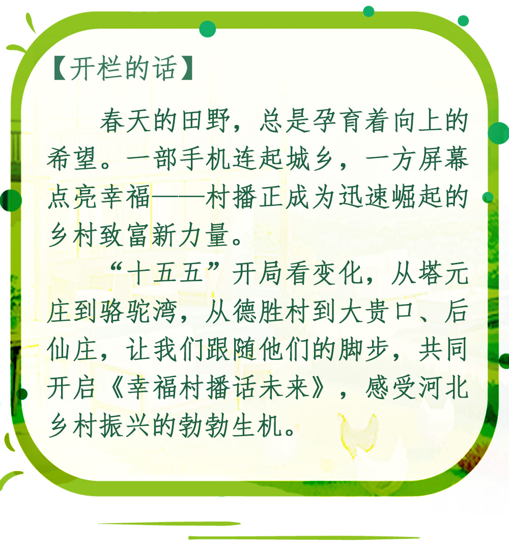 “十五五”开局之年,河北省委、省政府发布了《关于锚定农业农村现代化 扎实推进乡村全面振兴的实施意见》,为全省“三农”工作绘就了清晰的路线图。文件中看起来有些宏大的描述,落到一个村子里会是什么模样?今天,我们把镜头交给最了解乡村的人。一起跟随村播的镜头,走进石家庄向北10公里的塔元庄,听听这里给出的答案。