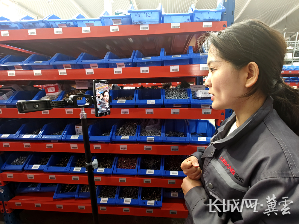 成安宜邦科技直播员在车间里向顾客介绍紧固件产品。长城网·冀云客户端记者 袁立朋 摄