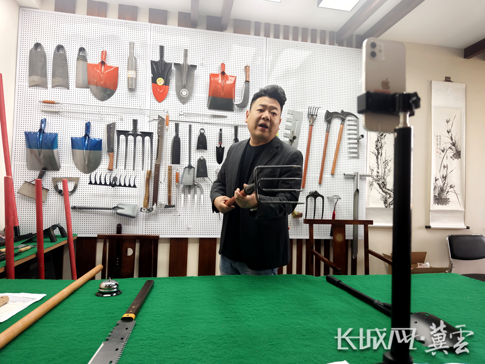 在成安“一品一播”基地,直播员向网友介绍当地生产的金属产品。长城网·冀云客户端记者 袁立朋 摄